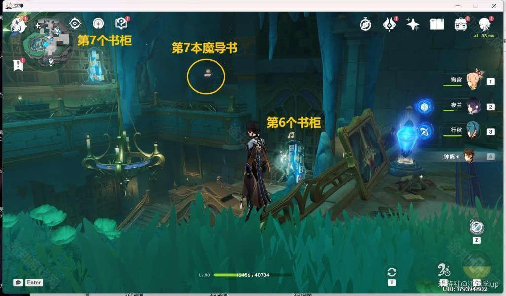 2、即可看到第7本【魔导书】和第7个【书柜】,从左边即可过去。