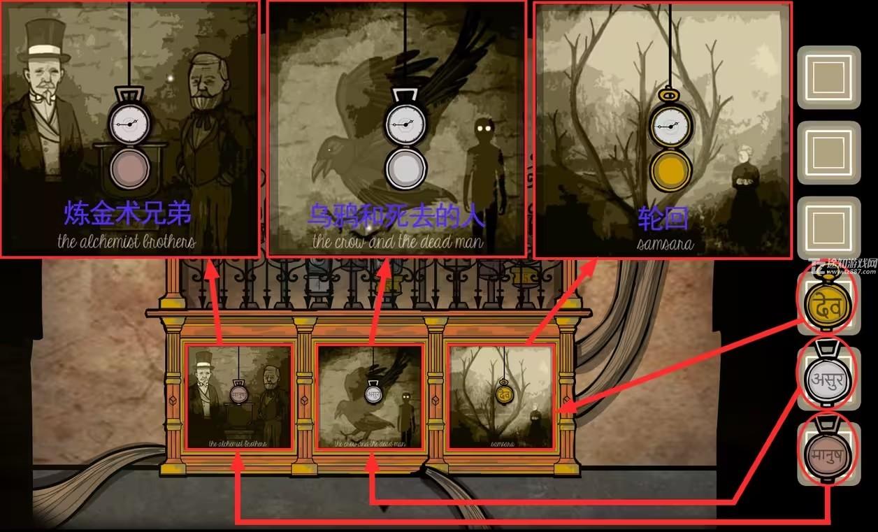 锈湖根源第33关怎么过?锈湖根源讲述了范德布姆家族三代人的故事,也就是锈湖整个系列的开始。这一关我们首先需要点击获得三人胸前的怀表,进入大门, 将三块怀表放入对应的凹槽处。那么接下来小编就为各位小伙伴带来锈湖根源第33关根图文攻略。