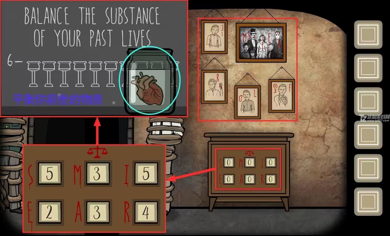9、进入大门,将(有心脏的罐子)放到最后的位置上。