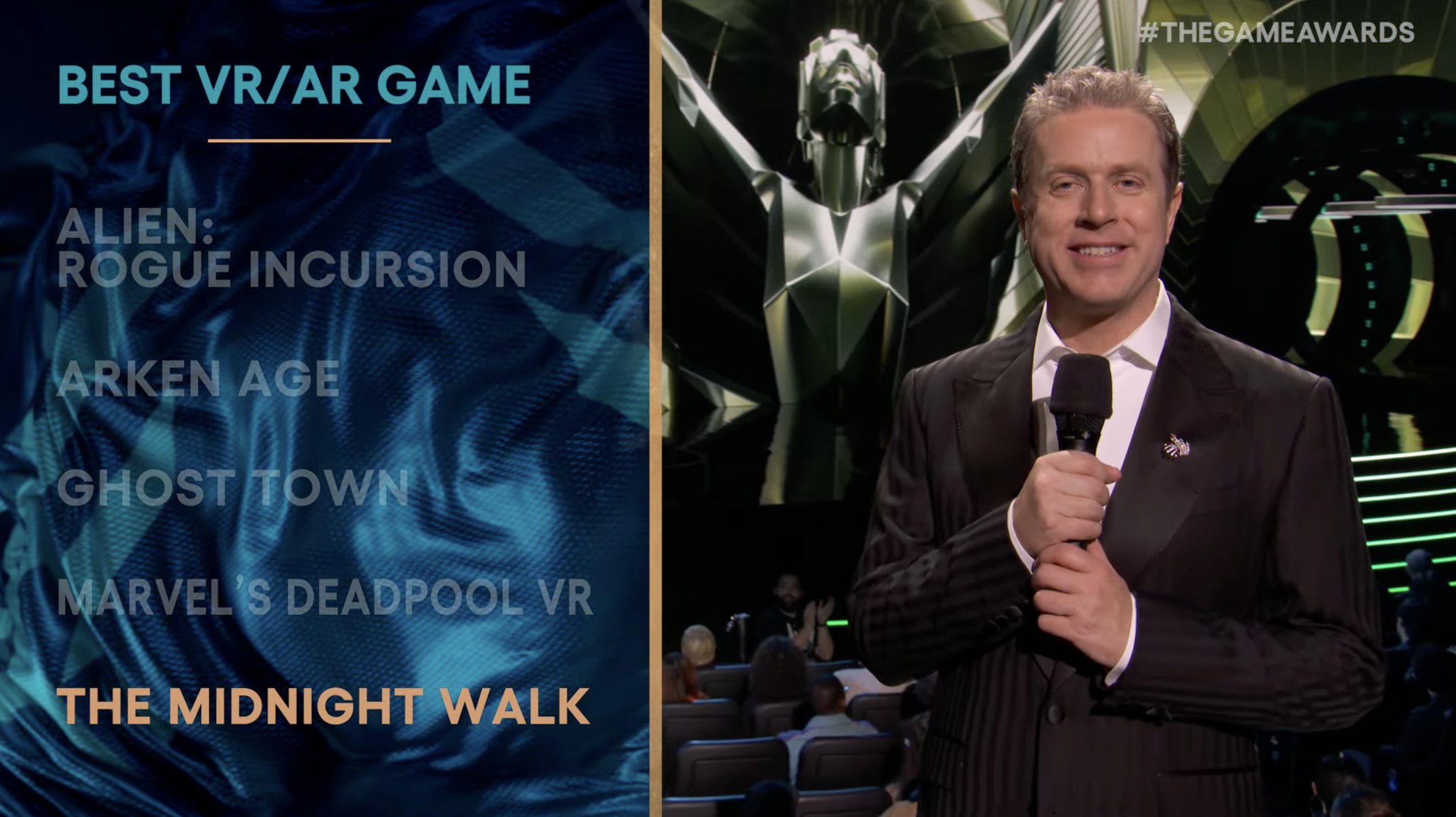一年一度的The Game Awards于今天的直播中公开了各奖项获奖结果,其中由MoonHood开发的《The Midnight Walk》荣获“最佳VR/AR游戏”。其他获得提名的作品如下: