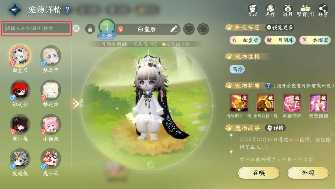 3.2.3 版本中将新增福宝宝专属特质【歌・???】(目前尚未确定是哪首歌曲),拥有该特质即可解锁宠物专属表情动作,福宝宝就能唱歌给玩家听。