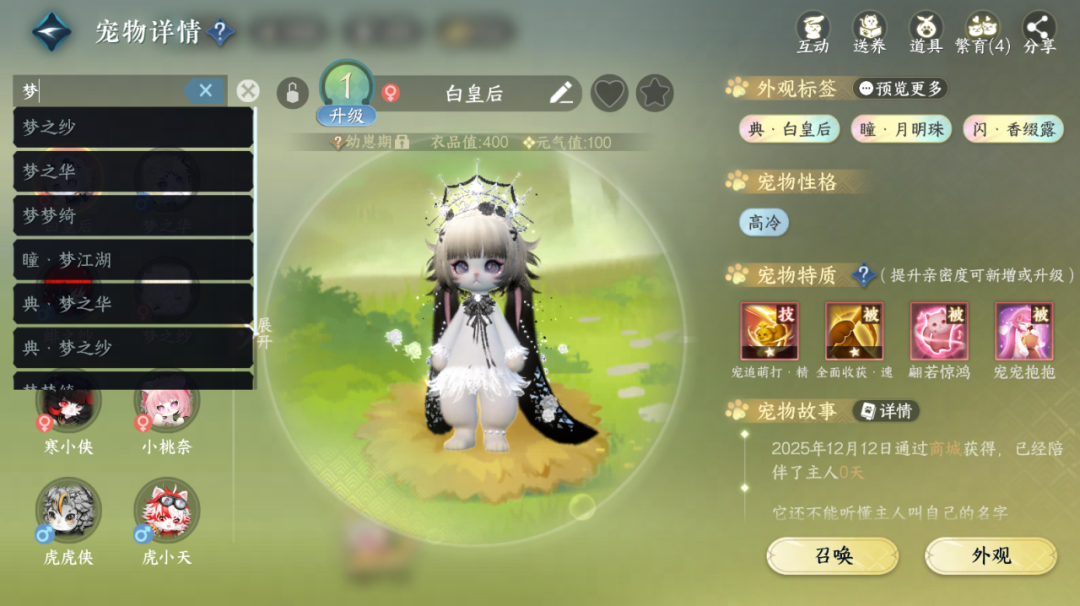 乐乐扭蛋机的典藏级别皮皮鼠宠物:“典・雪雪鼠”,可通过典藏繁育概率获得偏色款:“典・冬冬鼠”。