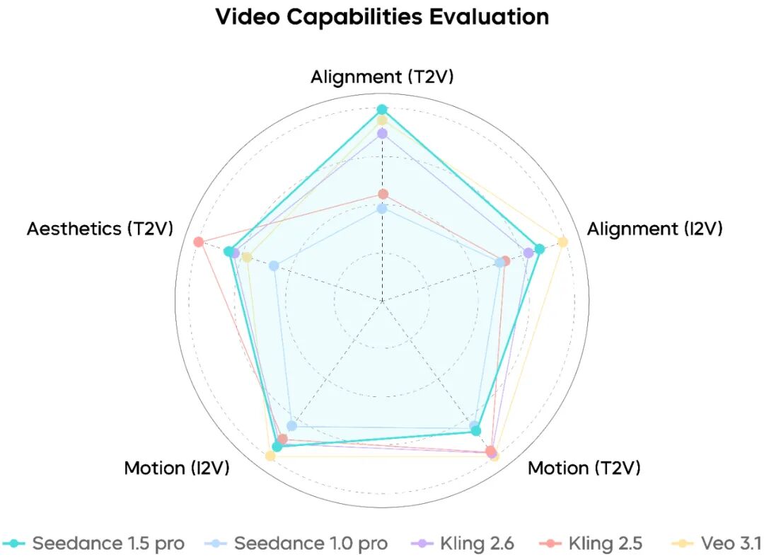 字节跳动 Seed 表示,在综合评测中,Seedance 1.5 pro 各项关键能力处于“业界前列”。目前,Seedance 1.5 pro 已上线即梦 AI 和豆包。附地址如下: