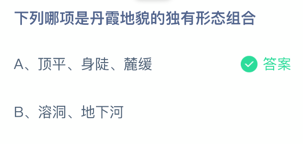 以上就是下列哪项是丹霞地貌的独有形态组合,支付宝蚂蚁庄园2025年12月18日答案最新,更多精彩内容,请点击关注本站手游网更新!
