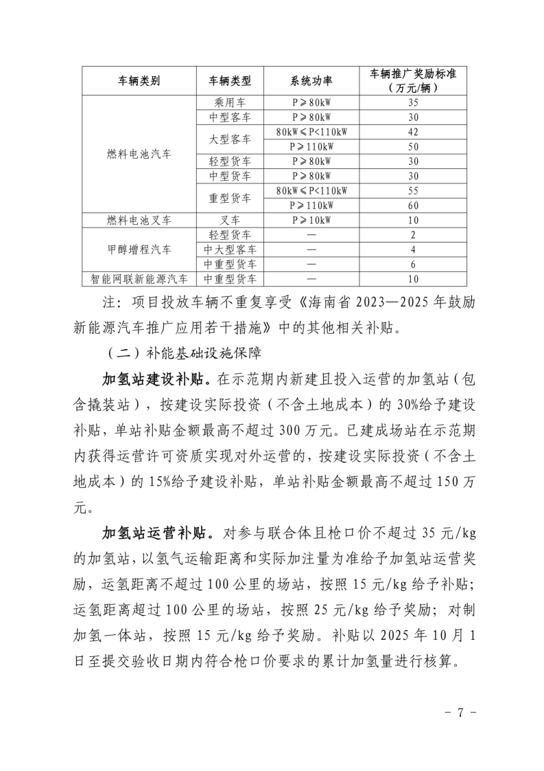 附件:1.海南省燃料电池汽车等技术示范应用项目第二批(2025—2026年)奖励方案