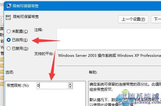 第五步,勾选已启用,并将下方带宽限制改成0,最后点击确定保存即可。
