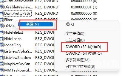 5、如果没有就右键空白处,新建一个DWORD并命名为EnableSnapAssistFlyout