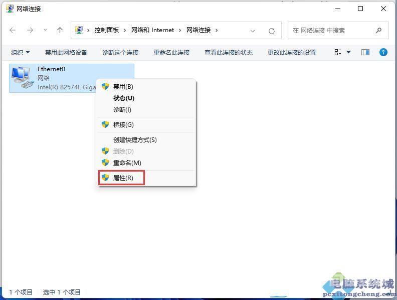 4、网络连接窗口,选择本地连接,然后点击,在打开的菜单项中,选择;