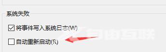 5、进入之后找到系统失败,取消勾选下方的自动重新启动即可。