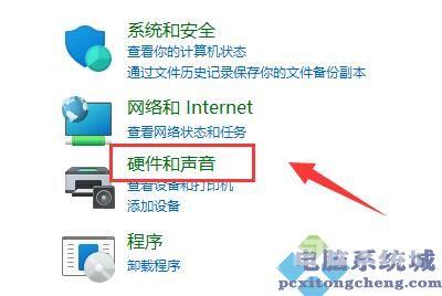 第三步,在控制面板中打开硬件和声音