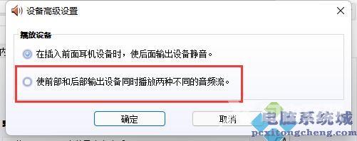 第六步,取消勾选使前部和后部输出设备同时播放两种不同的音频流,点击确定保存即可。