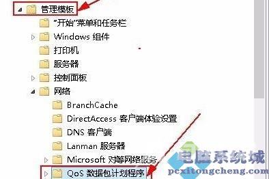 3、展开管理模板,并点击下面的Qos数据包计划程序。