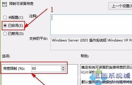 5、最后选择界面中的已启用并设置带宽限制为0,点击确定即可。