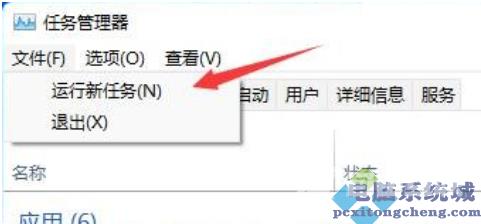 1、按组合键,打开任务管理器,然后点击左上角,在打开的下拉项中,选择。