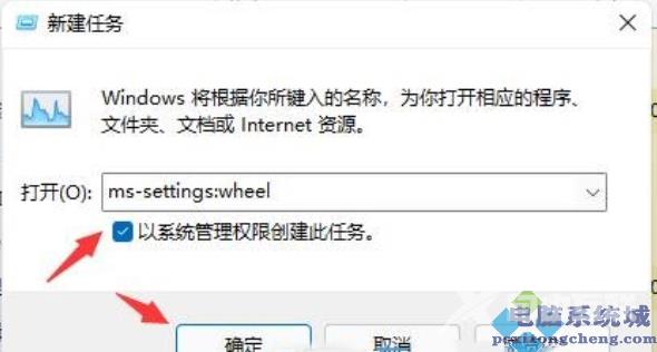 2、新建任务窗口,输入命令,并勾选,然后按。