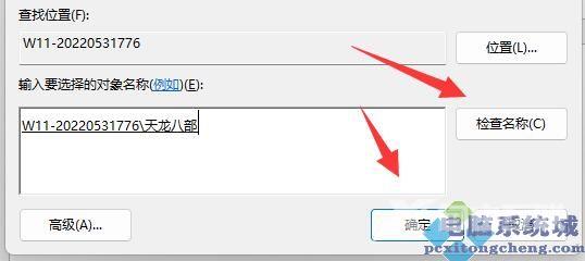 6、点开后,输入我们的账户名称,再检查名称并确定。