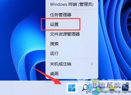 第一步,右键底部开始菜单,打开设置