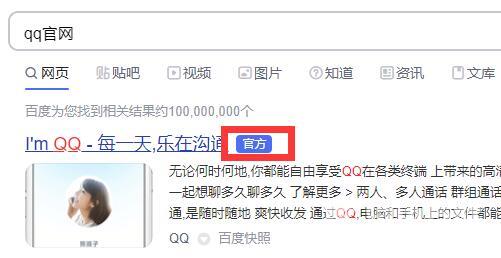 3、例如要下载qq,就在百度搜索qq官网,并打开有认证的官网。