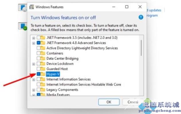 2、查看其中是否有Hyper-V选项,如果有勾选一下重启。重启后取消勾选,重启一次便可以使用虚拟机。