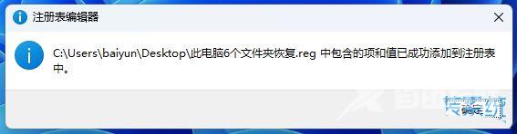 7、第二个注册表编辑器提示框,说明添加成功,点击;