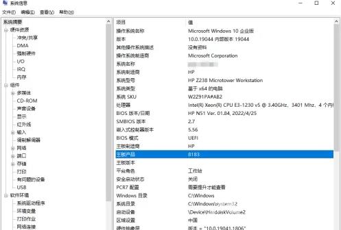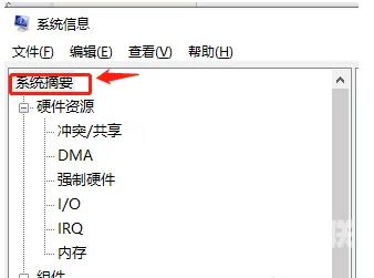 2、系统信息窗口,左侧有几个选项,分别是系统摘要,硬件资源、组件、软件环境,大家可以分别展开这些项进行查看。