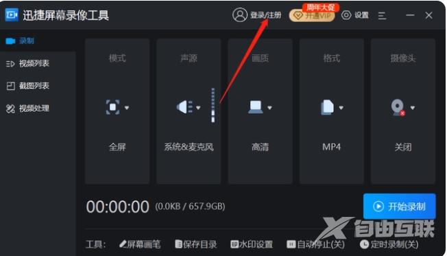 1、浏览器下载安装迅捷屏幕录像工具,打开后点击登录。