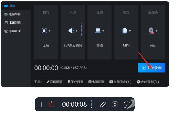 3、设置完毕后,点击‘开始录制’即可。
