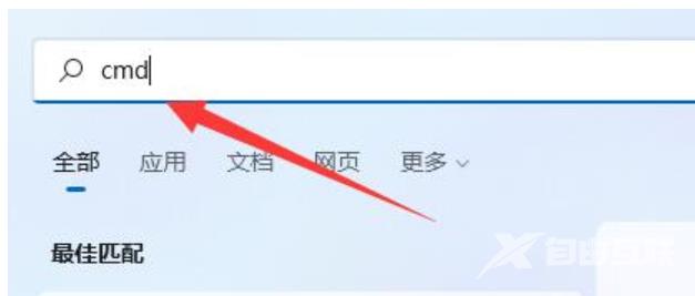 2、进菜单中之后,在页面上方的搜索栏中输入字母cmd。