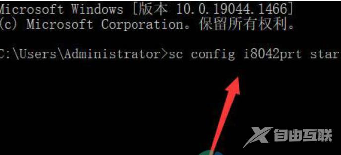 4、将页面打开之后,在页面输入框中输入sc config i8042prt start= auto再点回车键就可以解锁win11键盘了。