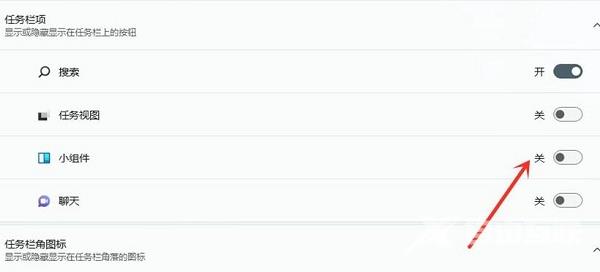 5、将任务栏项下方的小组件关闭就可以了,如图所示。
