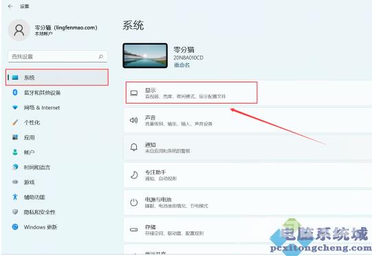 2点击左侧的系统后再点击右侧的显示。