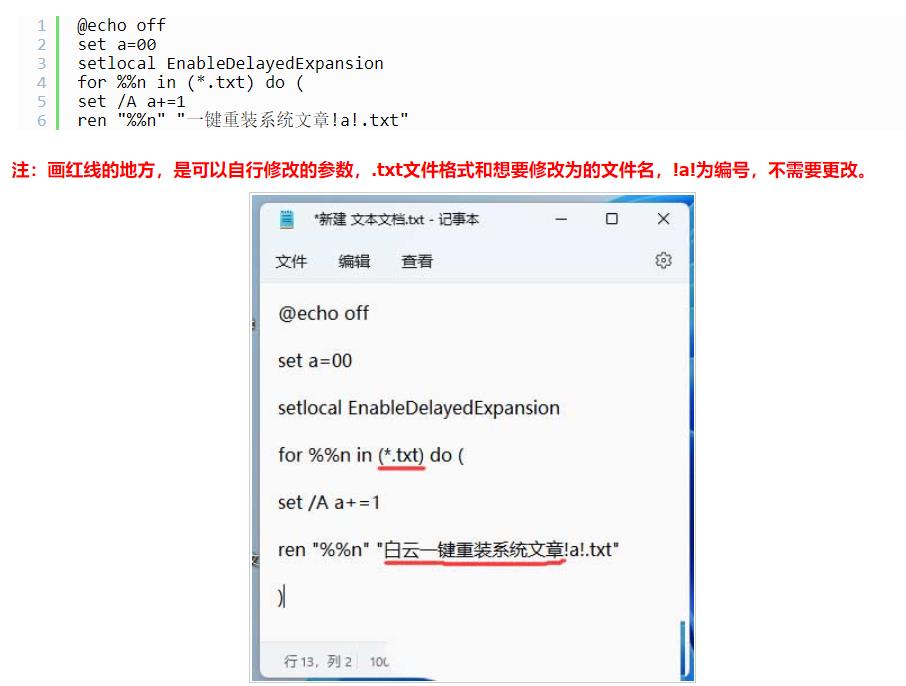 4、对刚才的文件进行重命名,修改后缀为 .bat 的批处理程序。