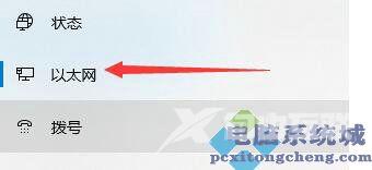 2、打开网络设置后,在左边栏找到并点击以太网