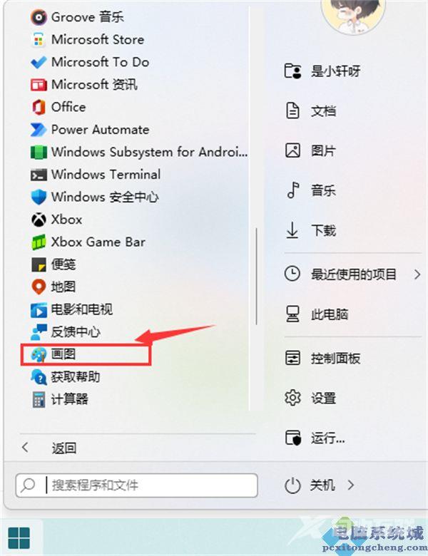 4、截图完成,然后按开始菜单,找到画图工具,如图所示: