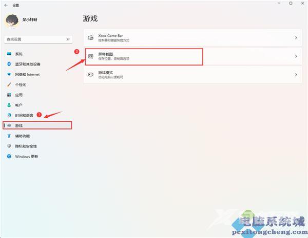 3、游戏设置界面左侧栏中选择游戏栏。