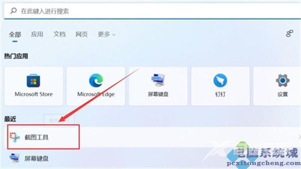 2、在搜索框中搜索并打开截图工具。