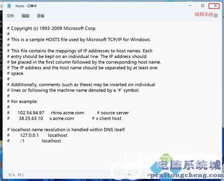 5、完成后,将打开hosts文件,将其关闭即可。