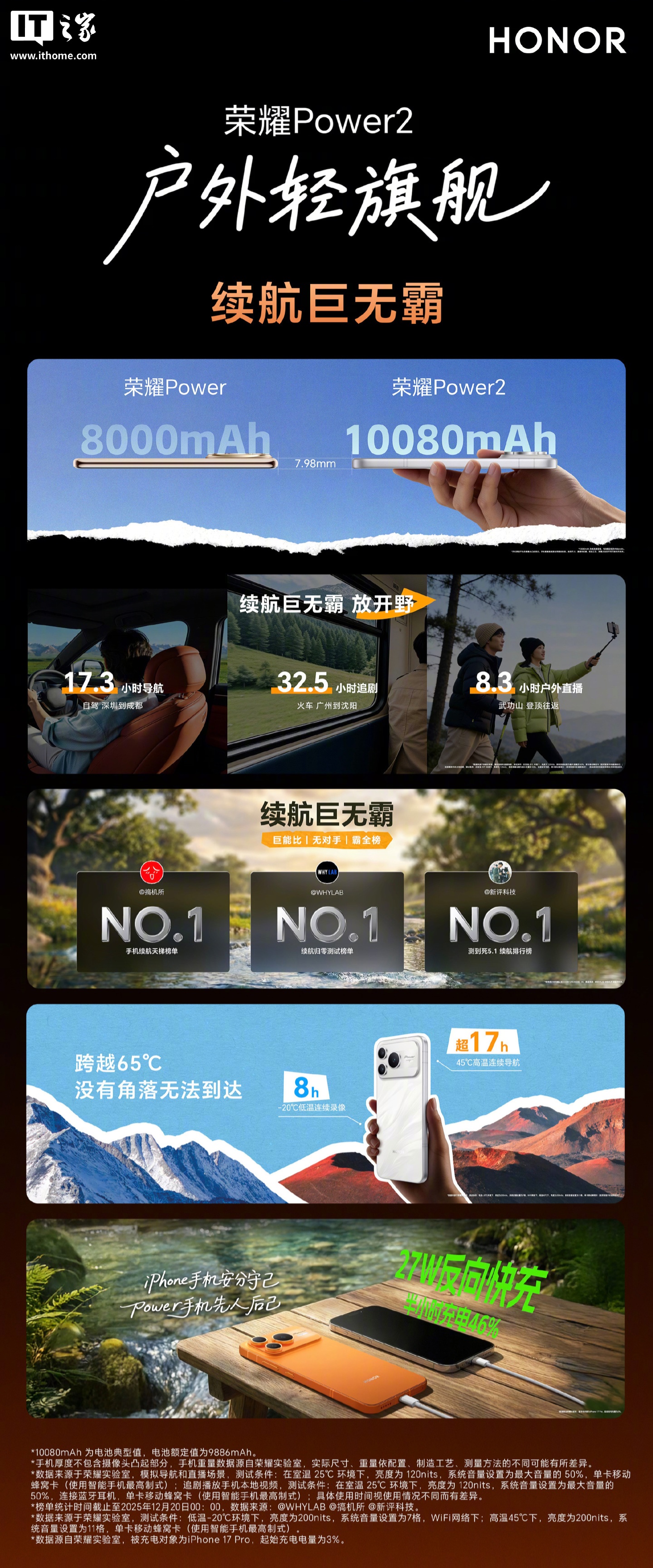 新机将搭载 10080mAh 的第四代青海湖电池,还支持 80W 超级快充 +27W 反向充电,变身“充电宝”,机身厚度 7.98mm 与上代相比保持不变。