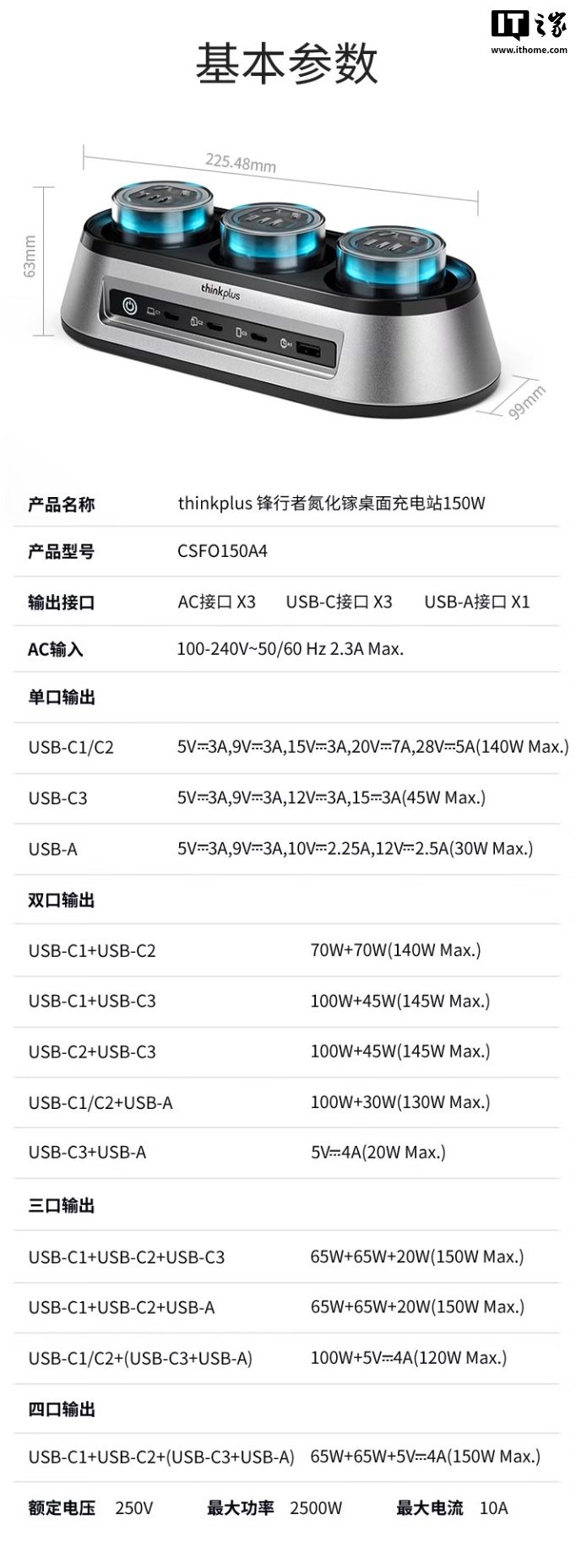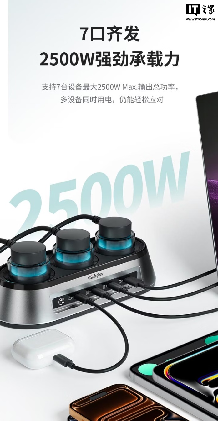 1 月 6 日消息,联想 ThinkPlus 现已推出锋行者氮化镓 150W 桌面充电站,采用 3AC 电源插座 +3C+1A 的接口配置,兼容各大品牌的笔记本电脑,售价 599 元。