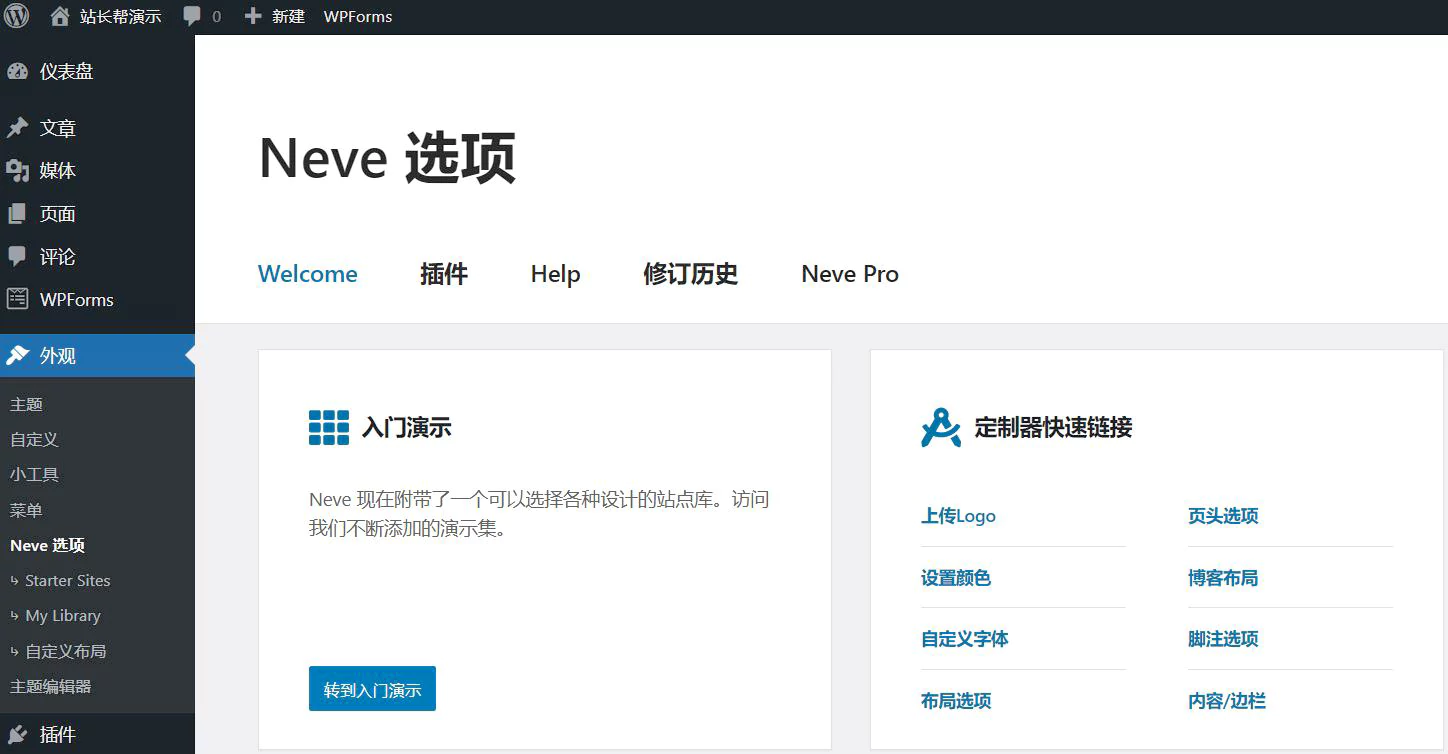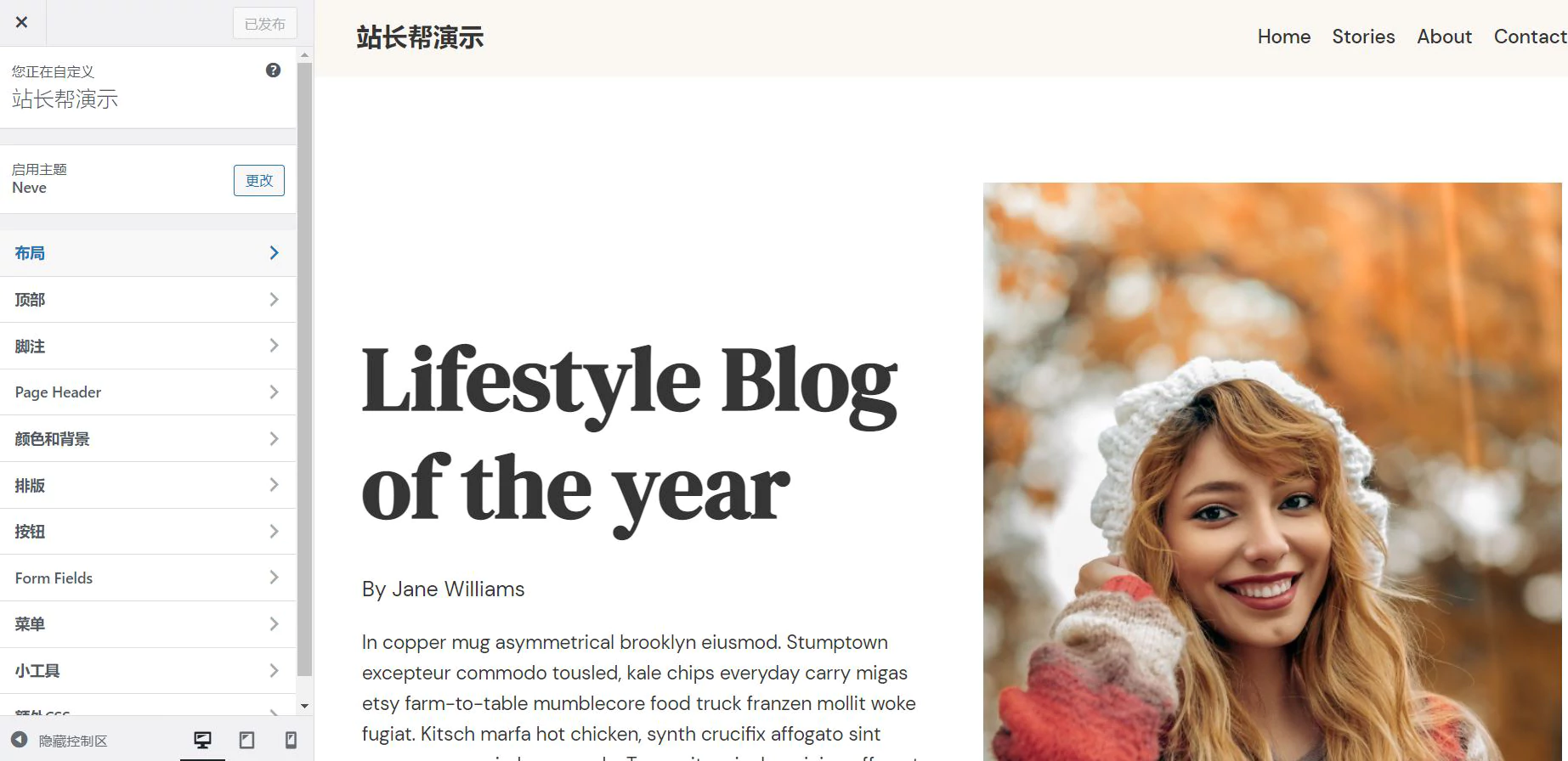 还可以从Neve入门网站库中一键导入80多种优秀模板。