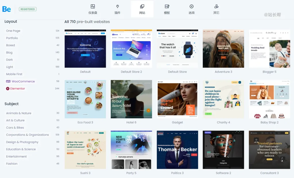 其中 BeBuilder 可视化页面编辑器包含200 多种元素,可以完全无代码设计/编辑网站的任何页面,另外还有超过650个预制模板,可在后台一键导入。