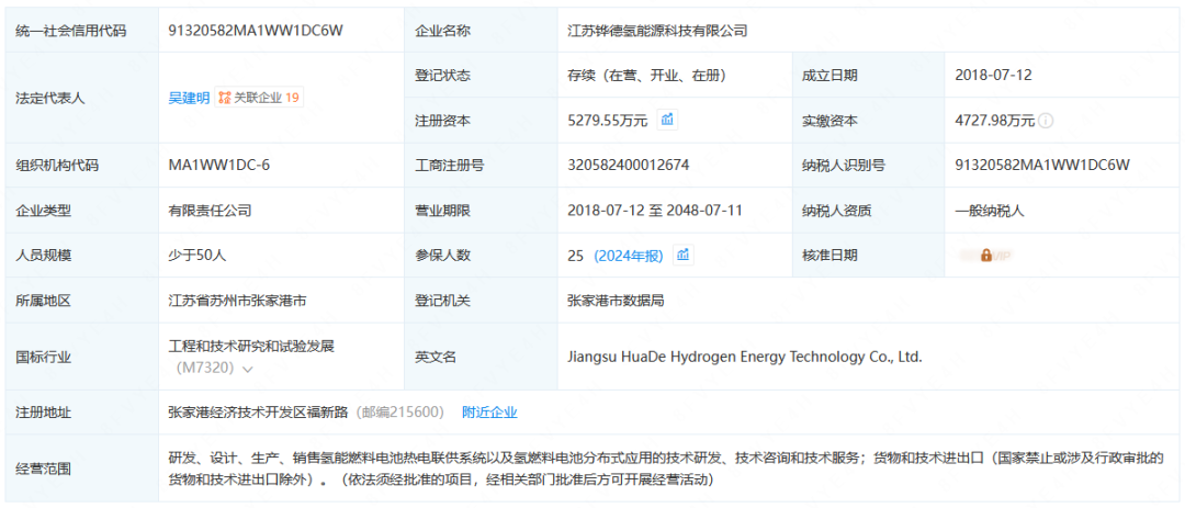 12月11日,铧德氢能曾完成B+轮融资,融资方为张家港产投。