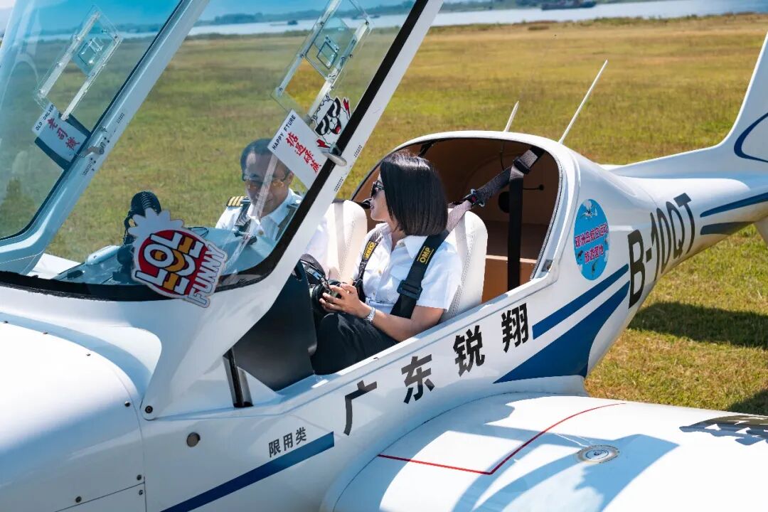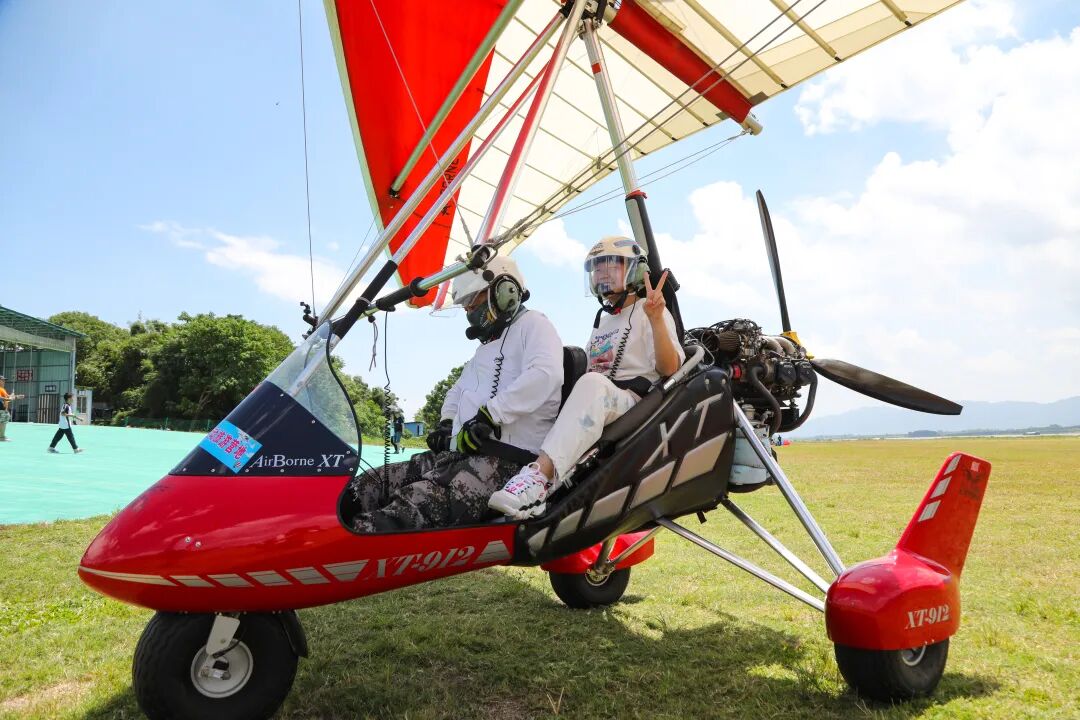 △市民游客在砚洲岛航空运动旅游营地体验飞行。梁小明 摄