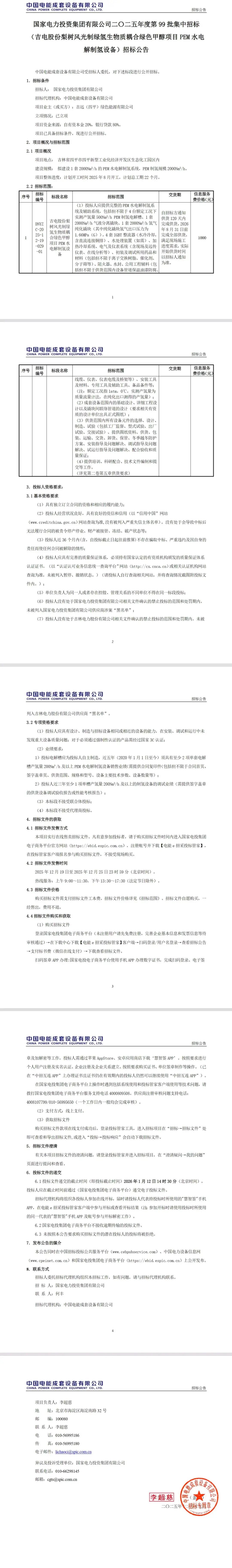 12月19日,国家电力投资集团有限公司二〇二五年度第99批集中招标(吉电股份梨树风光制绿氢生物质耦合绿色甲醇项目PEM水电解制氢设备)招标公告。