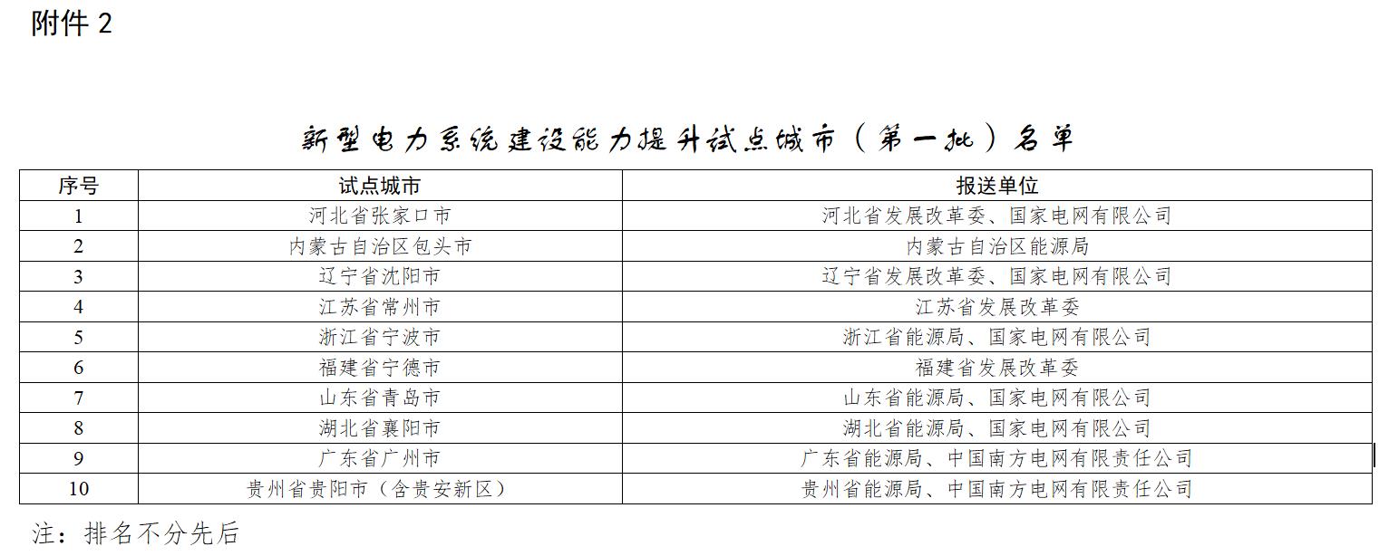2.新型电力系统建设能力提升试点城市(第一批)名单