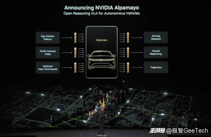 这场发布会上,英伟达并非推出一款简单的芯片,而是一套名为Alpamayo的完整自动驾驶生态体系——包含开源大模型、全球驾驶数据集与高保真仿真框架。