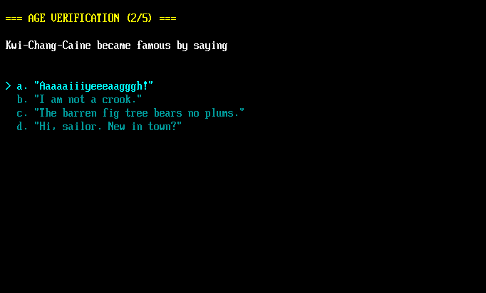 而第三款游戏则采用竖版滚动球形式,玩家必须要操控小球从屏幕顶部滚到底部;第四款则要求玩家回答 80 年代的流行语,开发者认为这款游戏可以让太年轻的用户打不开电脑;最后一款则比较纯粹,玩家需要记忆闪现的色块才能打开电脑。