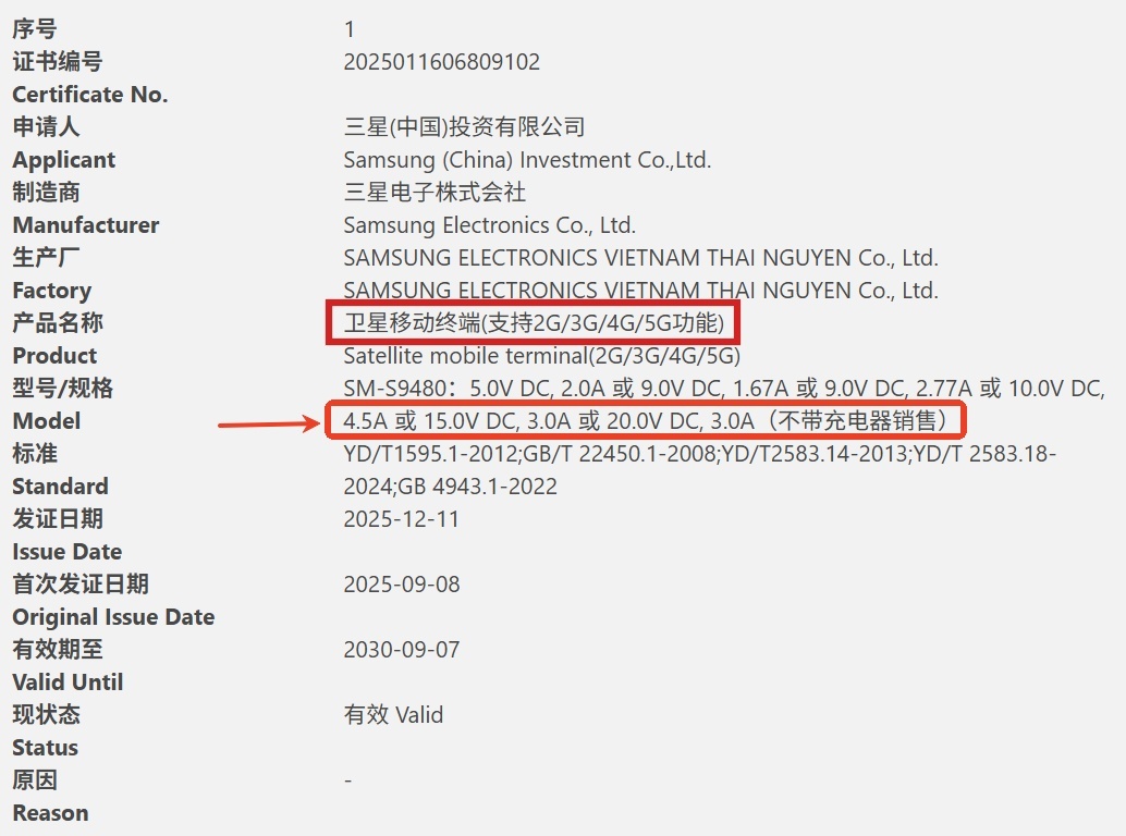 据去年 12 月报道,型号为 SM-S9480 的三星新机现身中国质量认证中心,结合此前 GSMA IMEI 数据库信息,基本可以确认该机为三星 Galaxy S26 Ultra。