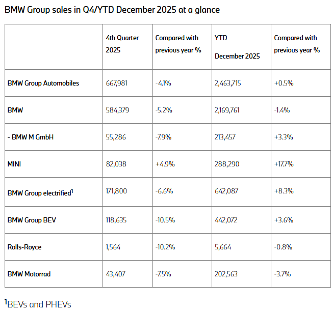 劳斯莱斯品牌在 2025 年向客户交付 5,664 辆汽车,同比下降 0.8%。同期,BMW Motorrad 共售出 202,563 辆摩托车和踏板车,同比下降 3.7%。