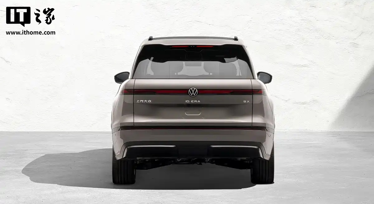 尾部方面,贯穿式尾灯组搭配中央的大众品牌标识,上方扰流板与下方镀铬饰条的组合,使车辆整体造型更加时尚。在轮胎规格上,ID.ERA 9X 提供 255/45 R21 106V 和 255/45 R21 106W 两种选择。